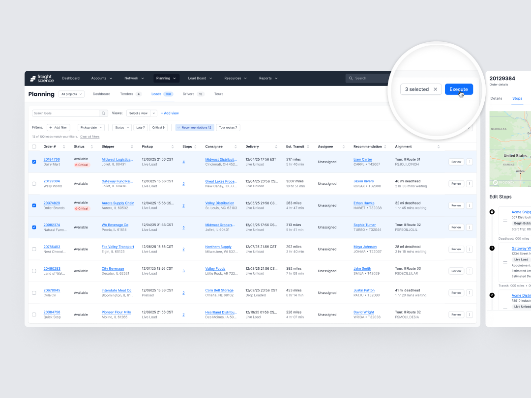 Redesigned a complex system for logistics planners, transforming it into a highly efficient, load management and planning tool. The new design empowered users to quickly view, filter, prioritize recommended assignments, and batch execute across multiple projects, reducing planning time by up to 66%.