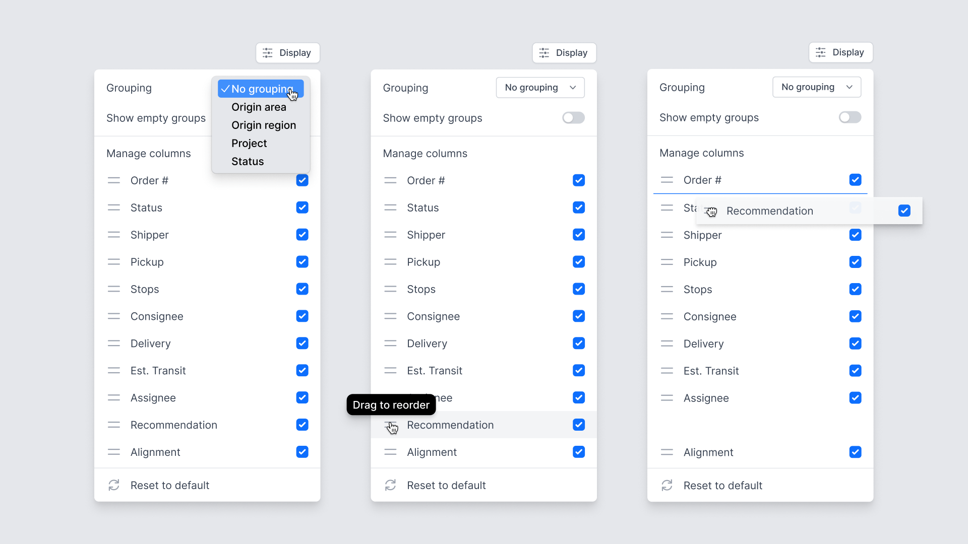 Customizable table display options empower users to manage column visibility, dynamically reorder columns, and group data based on workflow needs. This functionality allows planners to create personalized views and prioritize essential operational metrics.