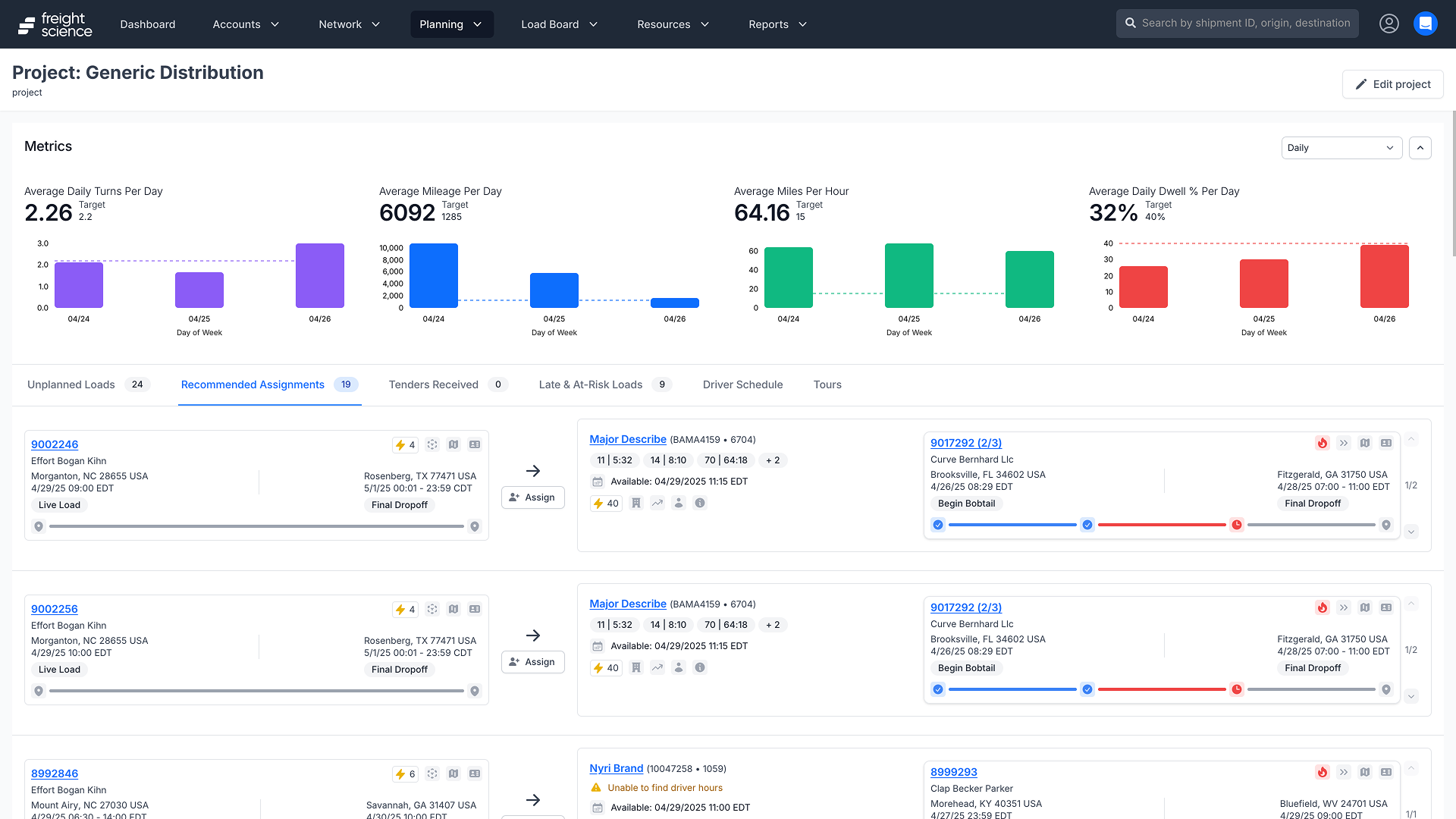 Redesigned a complex system for logistics planners, transforming it into a highly efficient, load management and planning tool. Planning recommendations were automatically generated per driver and load to identify optimal assignments. The new design empowered users to quickly view, filter, prioritize recommended assignments, and batch execute across multiple projects, reducing planning time by up to 66%.