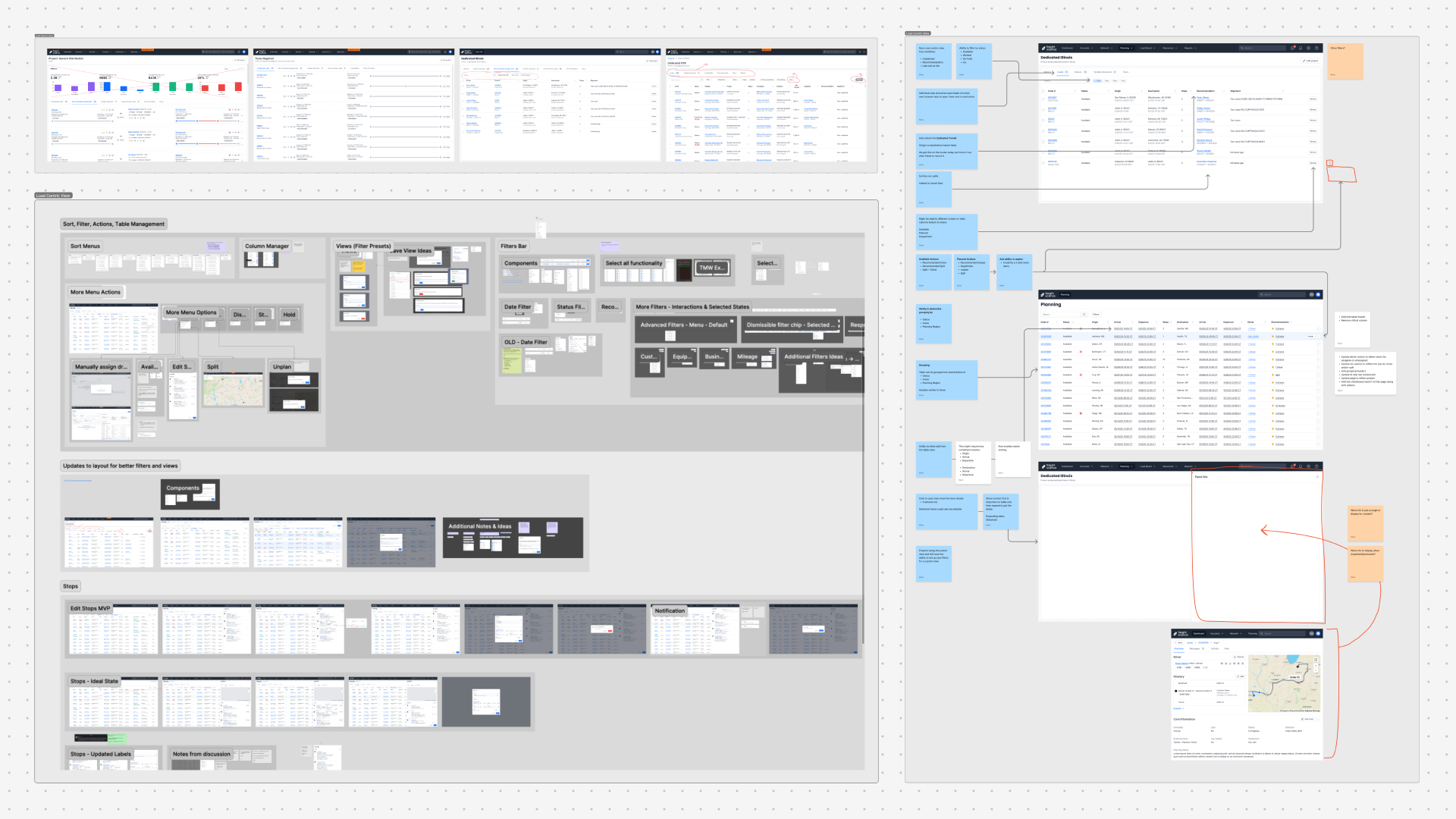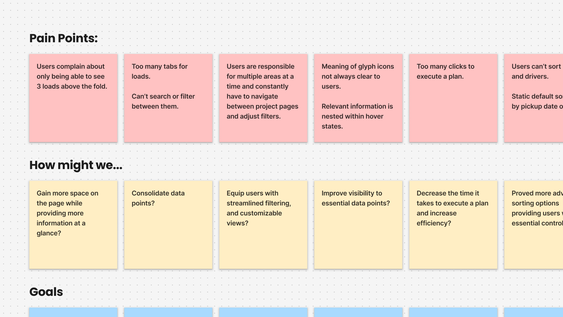 Metrics were migrated to a dedicated “Dashboard” tab, clearing visual space for active work. Previously fragmented data lists—such as Unplanned, Recommended, and At-Risk loads—were consolidated into a unified table view. This allowed users to search, filter, and execute tasks across all load types within a single context, eliminating the need to toggle between multiple pages.
