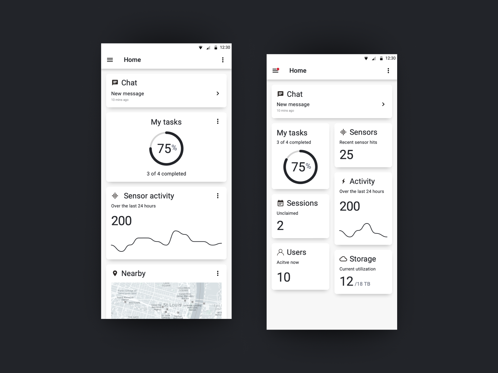 Mobile App Dashboard Concepts Dashboard concepts created for an early prototype of the Core mobile app.