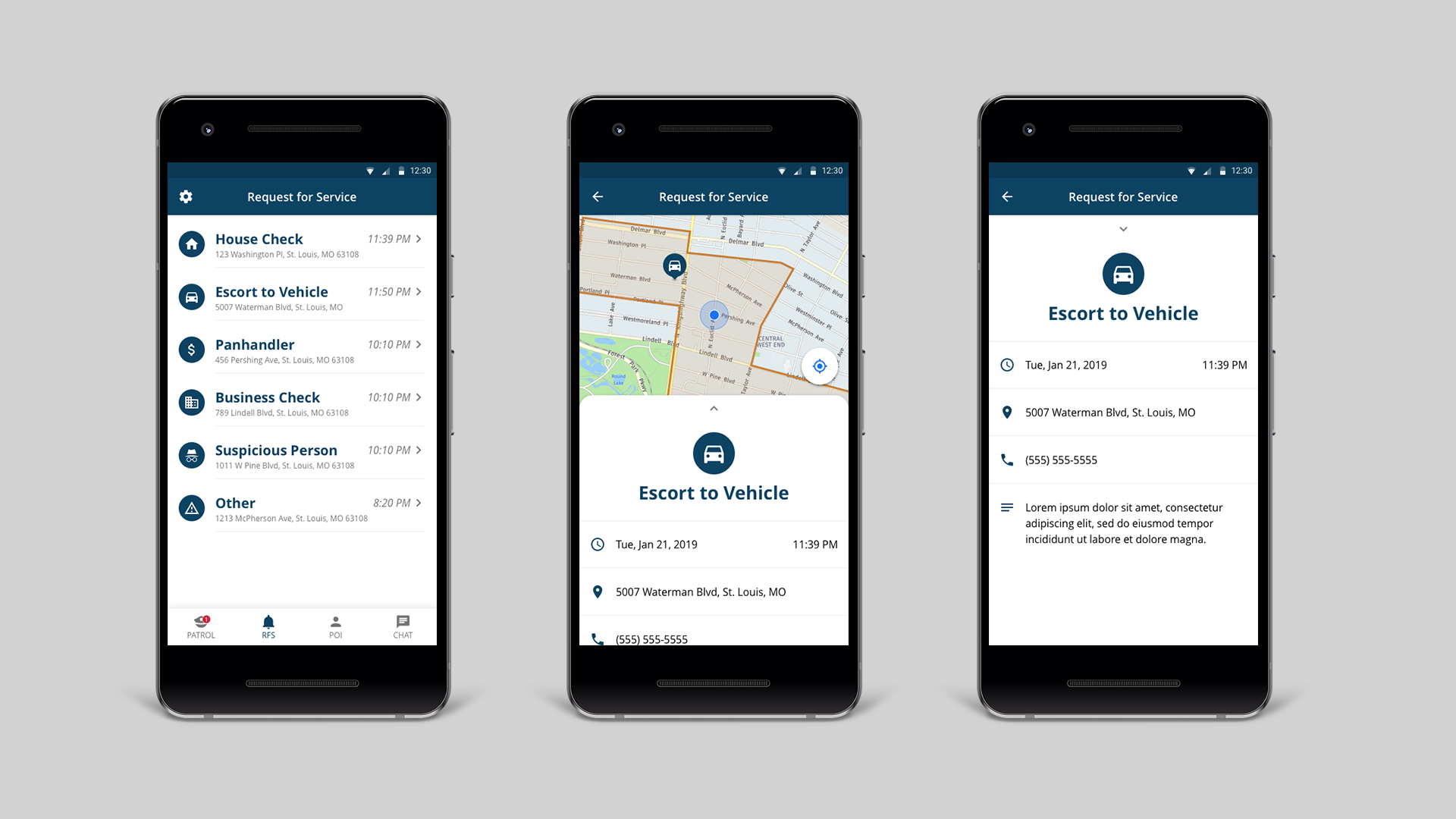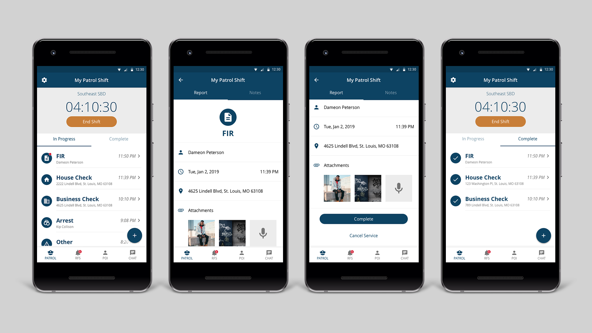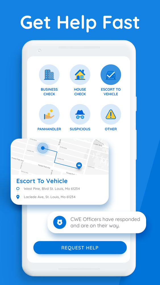 There were two separate mobile apps created for this initiative. One was for patrol officers to track time, receive requests, and log incident reports, and the other was a public-facing app for the citizens of Central West End.