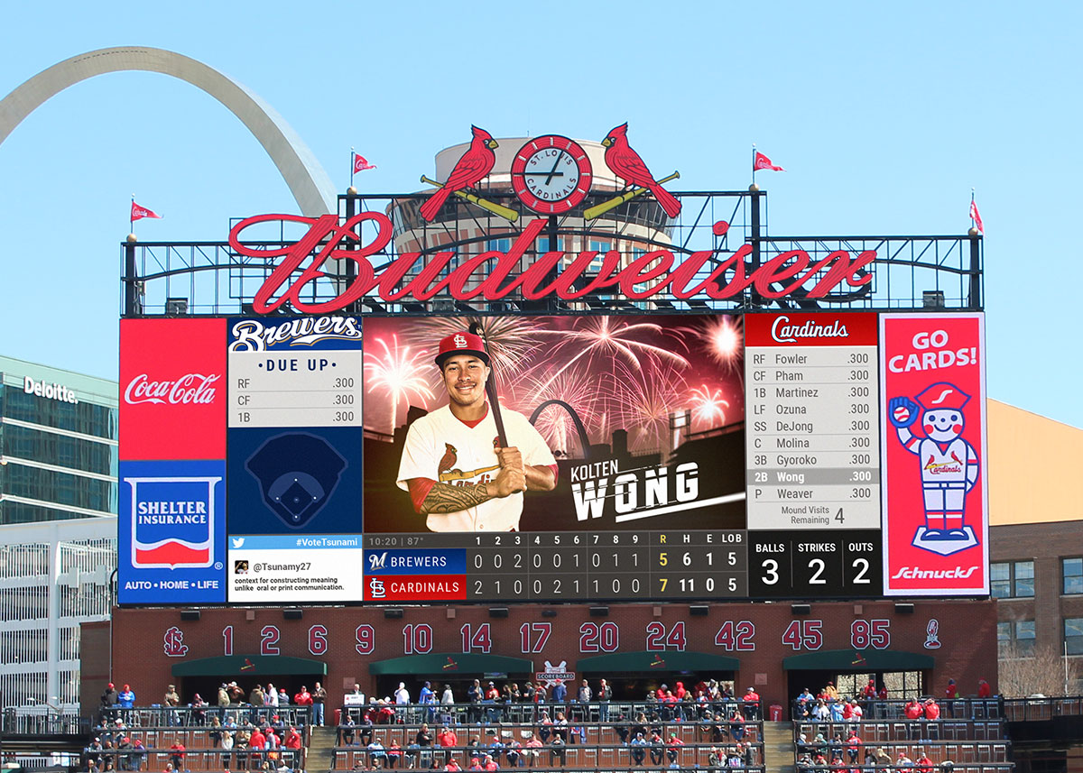 Walk-up headshots created for use on scoreboard during games at Busch Stadium. Various headshots include primary and special theme night designs.